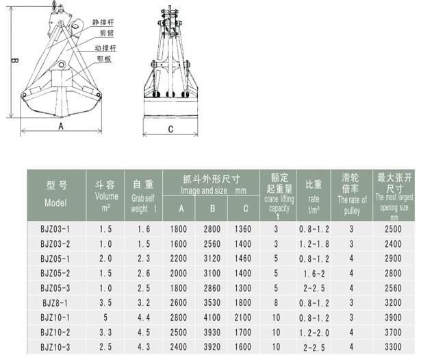 De grijper van het semi-afschuiftype is een soort van absorberende grijper met lange stok en een grijper, en de combinatie van twee voordelen, zoals de onderarm, de beweegbare stut, de statische pool en de kaak, enz. Het centrale scharnier van de onderarm scharnierend aan één uiteinde van de voorste arm van het centrale scharnier van de kaakplaat, en het andere uiteinde is uitgerust met een schuifwiel. Het glijdende wiel wordt tijdens de operatie gehesen, zodat de kaak gesloten is, het materiaal grijpt en de grijpkracht sterk is. Het is gemakkelijk te openen en het is geschikt voor het verwerken van bulkmaterialen zoals geel zand, kolen, zandpoeder en staalslakken voor enkel touw en dubbele kabelkranen.