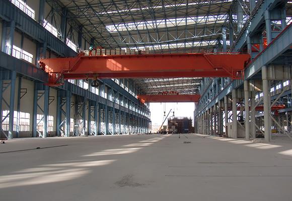 1) Hoofdligger: hoofdliggers zijn van plaat gefabriceerd gelast doos type constructie of gerold staal sectie type als per eis in ontwerp voor enkele ligger kraan en dubbele ligger kraan, ontwerp te ondersteunen stress ontstaat als gevolg van verticale en zijdelingse krachten met impact waarop zij zijn onderworpen. De maximale doorbuiging van de hoofdligger is beperkt tot 1/1000 van de spanwijdte van de belasting, inclusief het gewicht van de trolley.