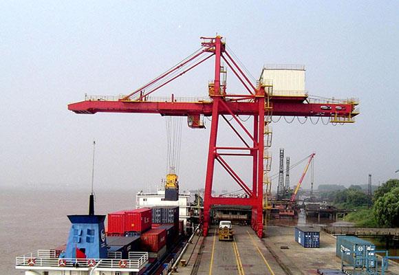 Kade van de kade bestond hoofdzakelijk uit staalstructuur, hijsmechanisme, karretje reizend mechanisme, lang reizend mechanisme, sluipend mechanisme. Alle mechanismen kunnen met een traploze snelheid worden bediend door de machinist in de omnibare kijkcabine.