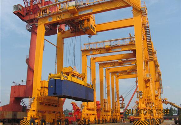 2. Weihua rubber tyred container brugkraan is uitgerust met gespecialiseerde spreaders om standaard-sized 20GP, 40GP, 45HQ containers en hydraulische opslagtanks.