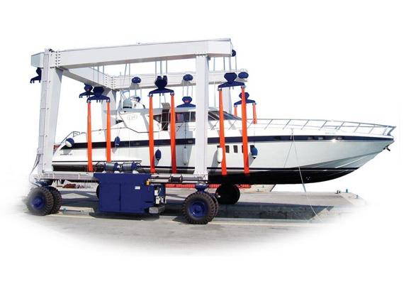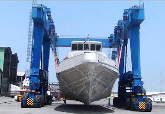 Volgens verschillende eisen van onze klanten kan de bootbehandelingskraan verschillende tonnageboten of jachten (10T-800T) aan de kant van de wal behandelen, hij kan worden gebruikt voor het onderhoud aan de walzijde of kan de nieuwe boot in het water plaatsen. Deze jachtkraan heeft een zachte en stevige riem om de boot en het jacht op te tillen zodat het nooit het oppervlak zal beschadigen. Deze kraan kan ook de boot snel achter elkaar plaatsen met een kleine opening tussen elke boot.